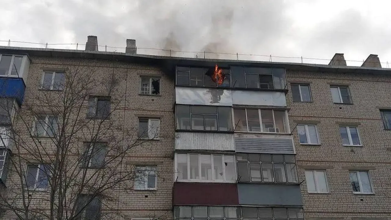 Белгород. Атака трёх дронов. Повреждены коммерческий объект, пять квартир, 27 авто, остановка.