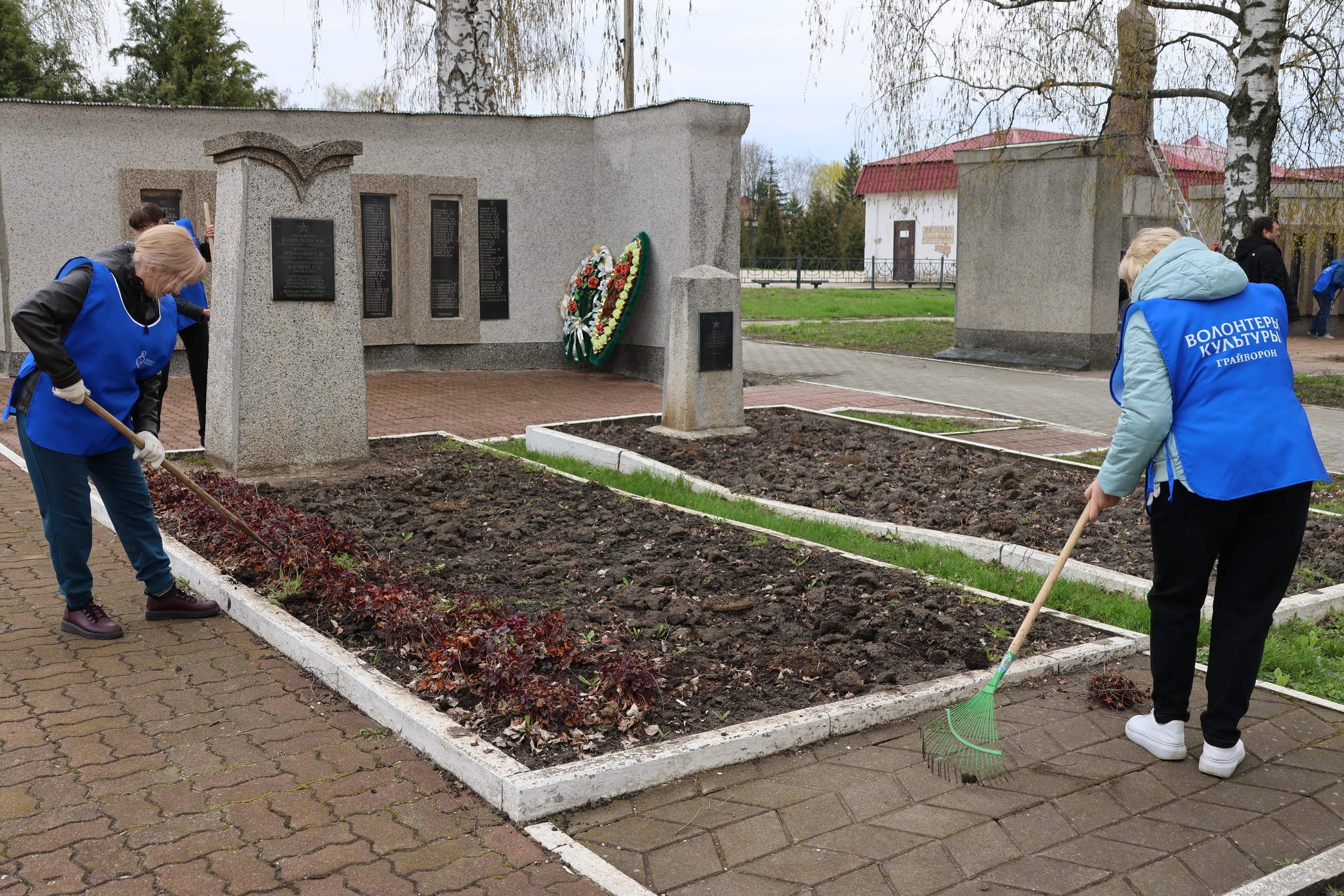 В рамках этой акции специалисты Грайворонского культурно-досугового центра и волонтёры культуры провели субботник на Мемориале Славы. Перед началом работ участники узнали об истории мемориала. Мария Черниченко, сотрудник Грайворонского историко-краеведческого музея, провела увлекательную экскурсию, рассказав о значении мемориала для города.