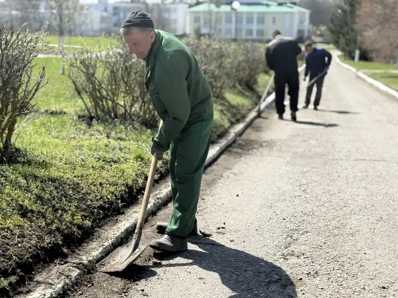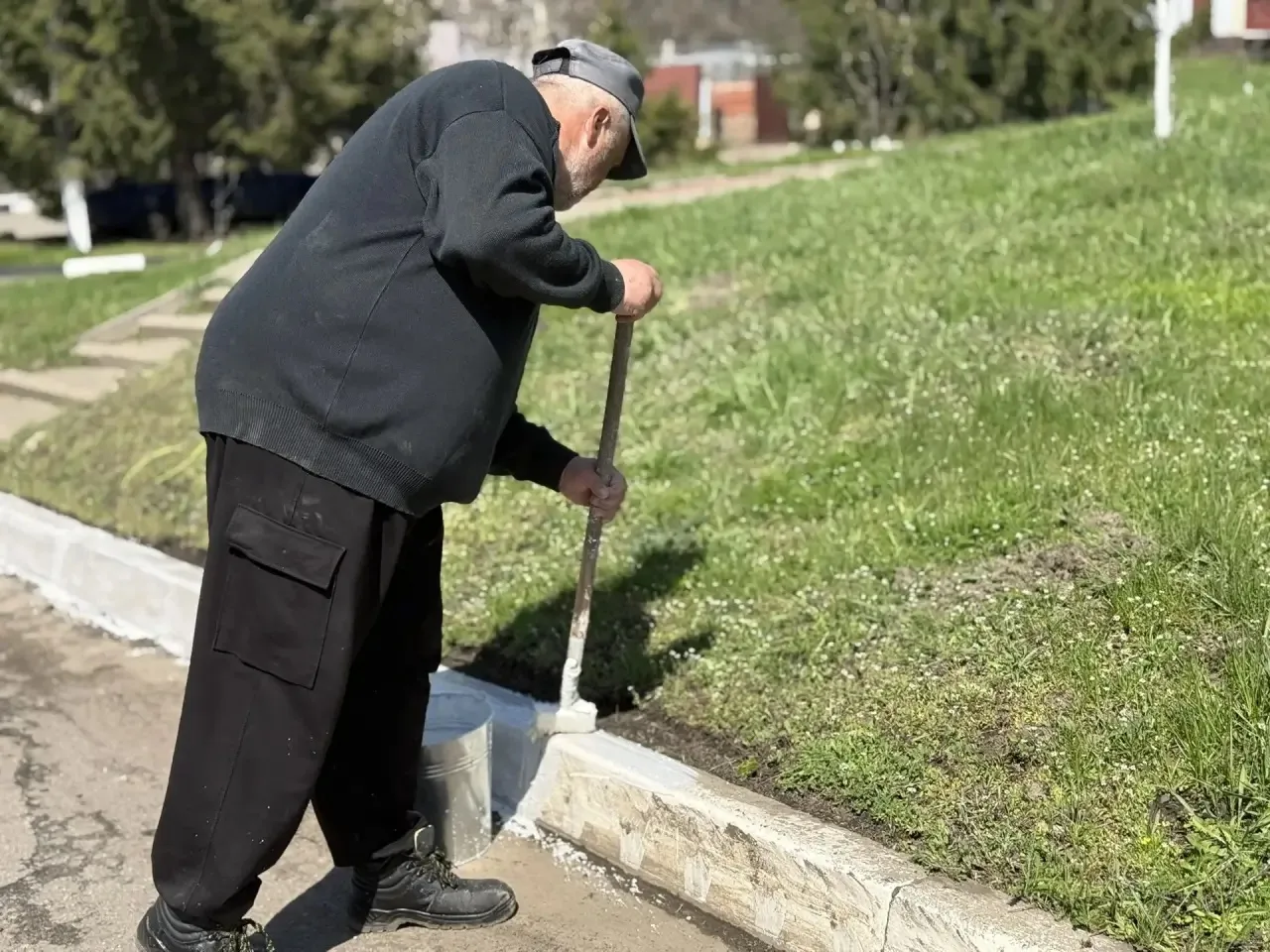 Несмотря на непростую оперативную обстановку, жизнь в селе не останавливается ни на минуту. Специалисты приводят в порядок улицы и дворовые территории: белят бордюры, очищают дороги и тротуары.