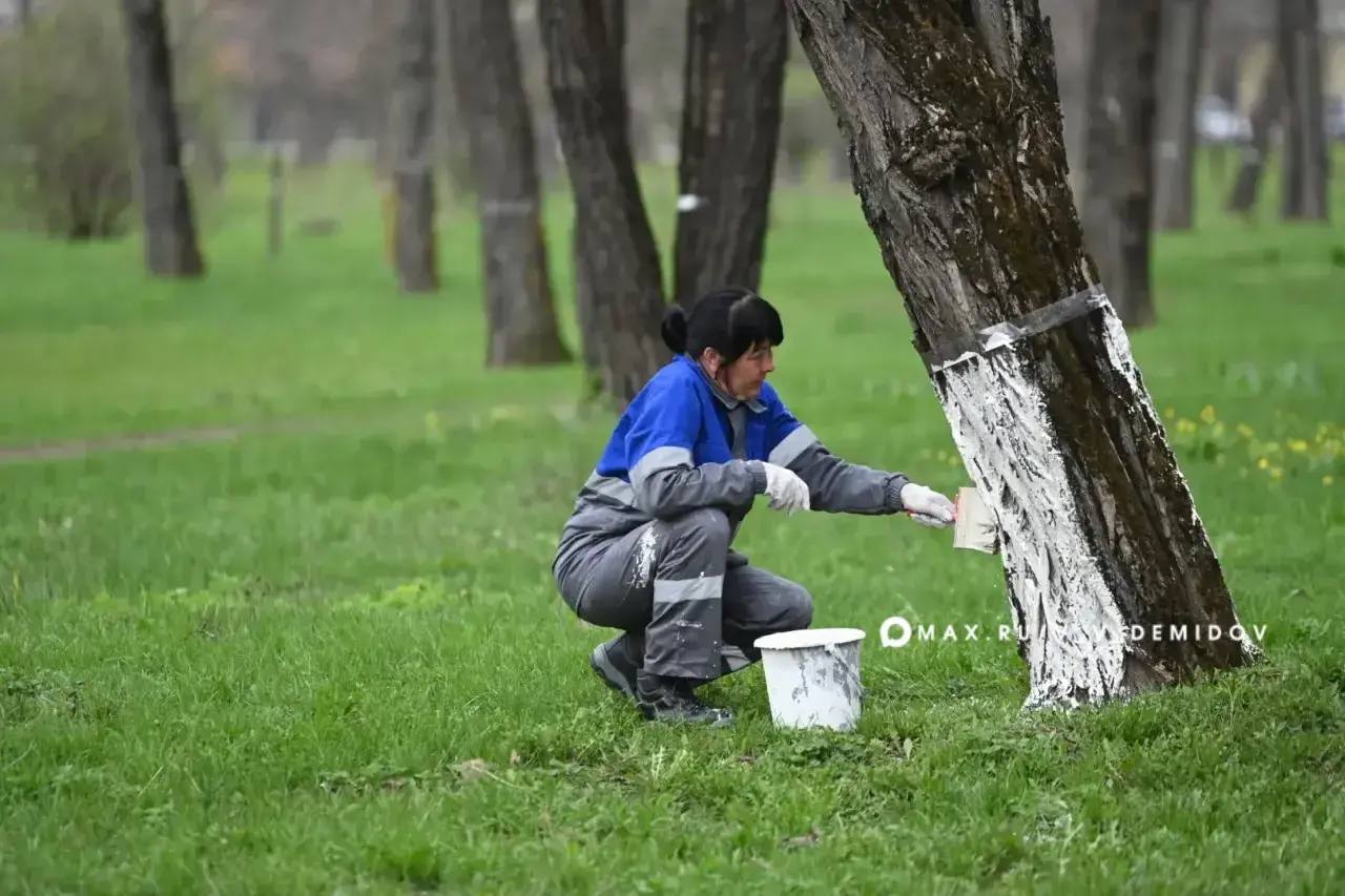 Продолжают убирать прилотковую часть дорог, вывозить мусор с территории кладбищ, восстанавливать газоны, обрезать кустарники, готовить фонтаны к сезону.