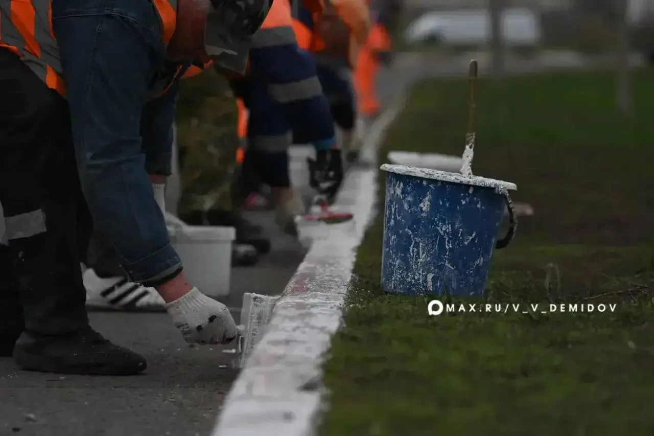 Рабочие красят бордюры, турникеты, остановки и скамейки. Также убирают прилотковую часть дорог, вывозят мусор с кладбищ, обрезают кустарники и готовят к сезону фонтаны.