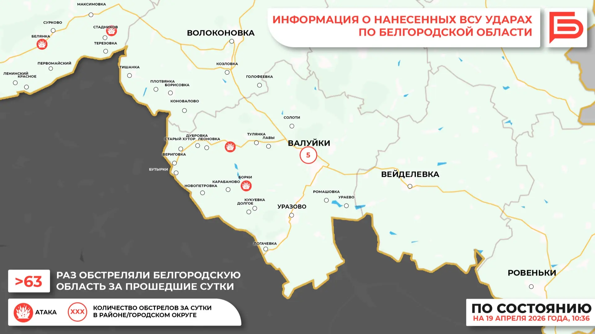 За прошедшие сутки ВСУ обстреляли Белгородскую область не менее 63 раз