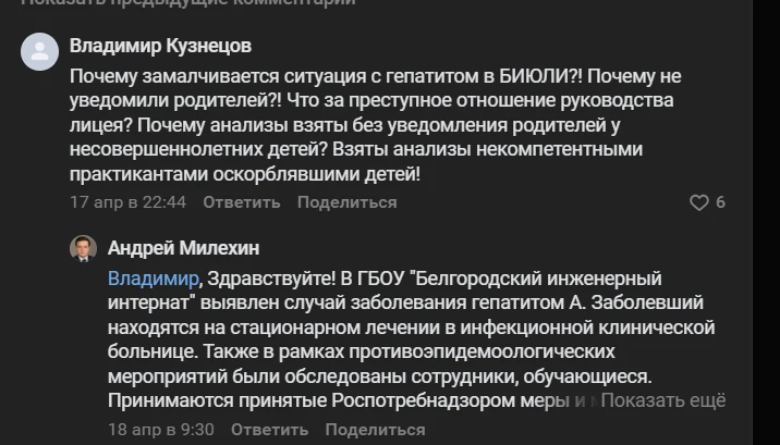 Министр образования Андрей Милёхин подтвердил факт заболевания. Сейчас ребёнок находится в инфекционной больнице, остальные учащиеся и сотрудники интерната обследованы.