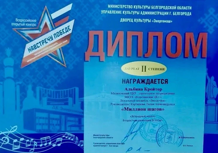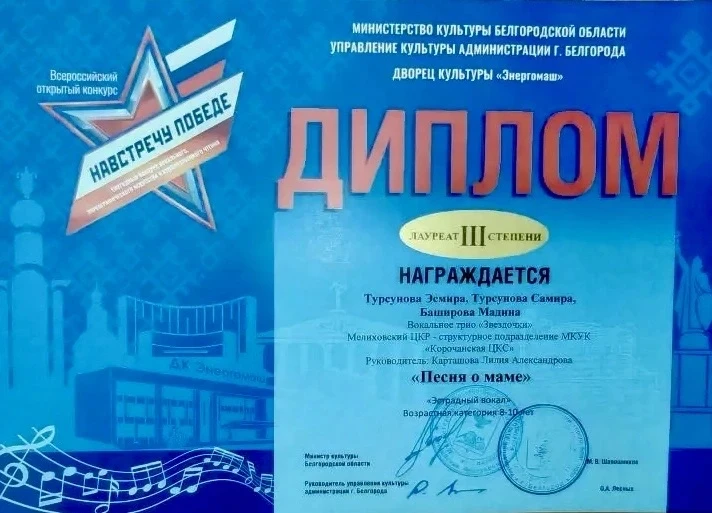 Юные вокалистки кружка «Звёздочки» Мелиховского центра культурного развития с триумфом выступили на Всероссийском открытом конкурсе «Навстречу Победе»!