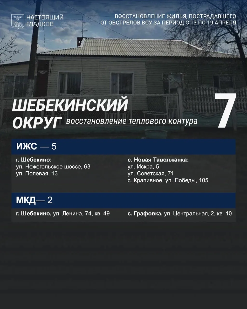 В Шебекинском округе завершили 64 объекта, закрыли контур на 7. За неделю выявлены 61 поврежденный дом и квартира, 37 автомобилей.