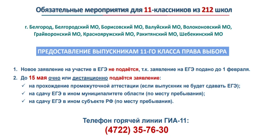 Для белгородских выпускников заработали горячие линии по вопросам ГИА