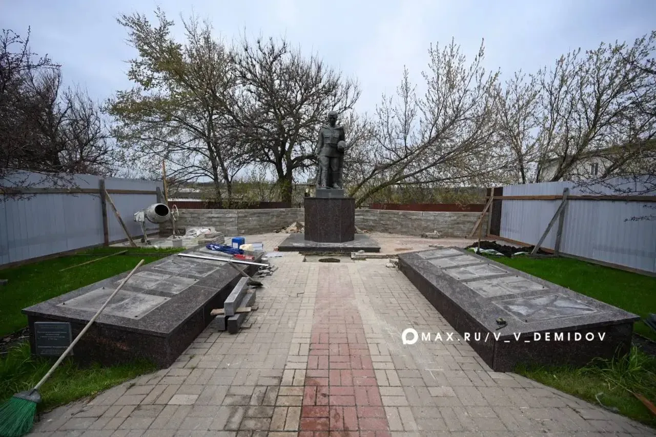Памятник возвели в 1947 году. Он является объектом культурного наследия регионального значения. Сейчас его реставрируют. Строители обновят скульптуру, заменят таблички с именами героев и гранитные плиты.