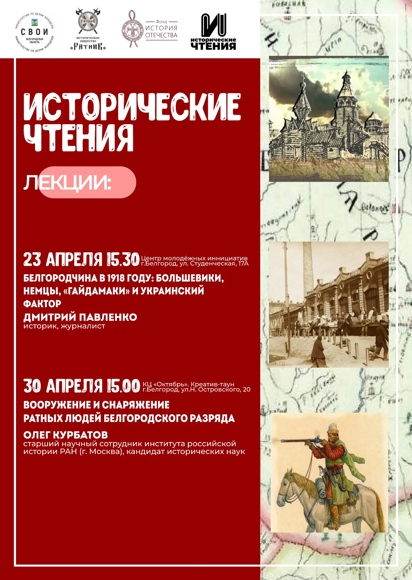 Историческое общество «Ратник» совместно с министерством по делам молодёжи реализует цикл лекций в рамках проекта «Исторические чтения». Эти встречи созданы для тех, кому небезразлична история родного края. Ждём всех желающих!