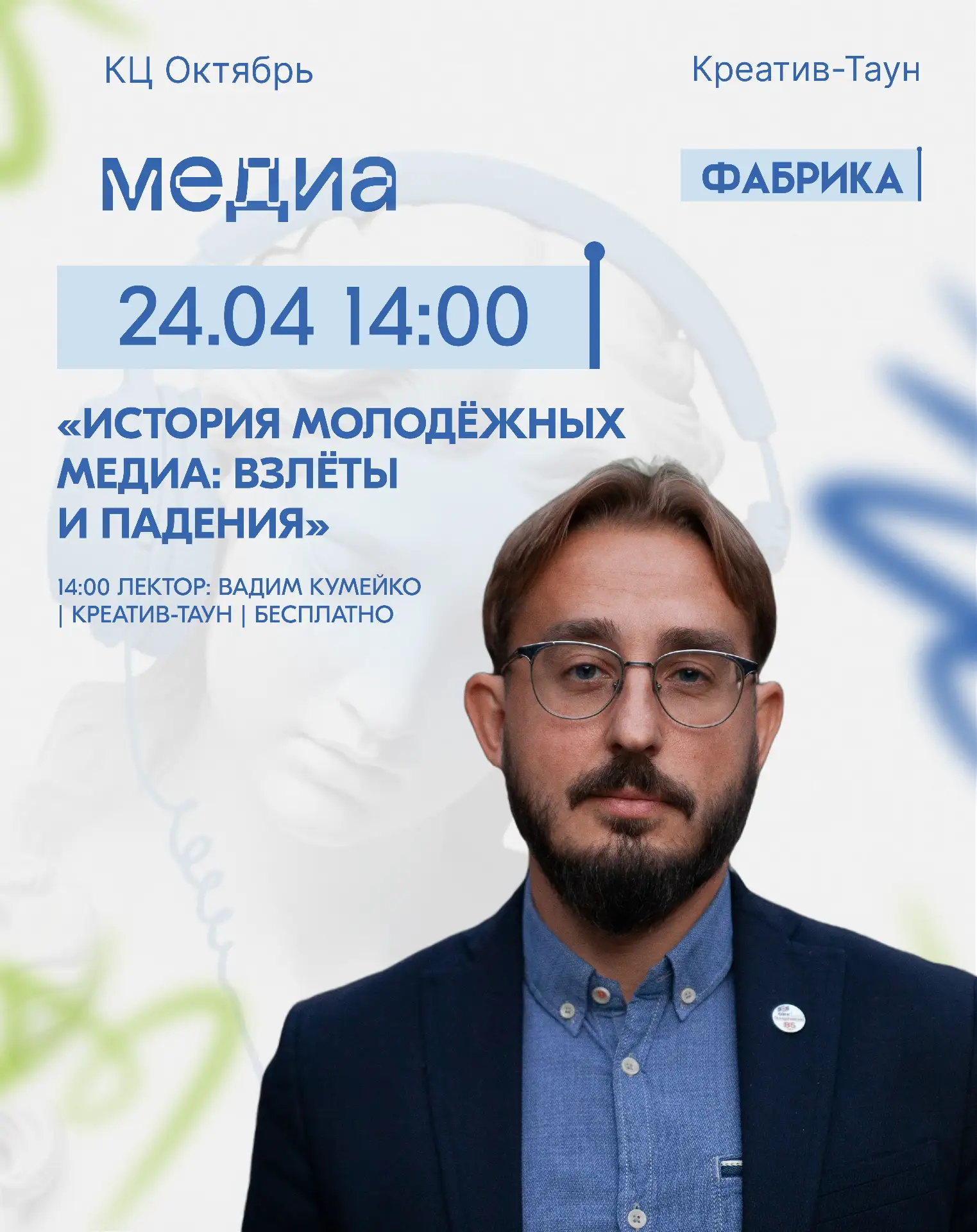 14:00 | «История молодёжных медиа: взлёты и падения»Разберём, какие проекты меняли правила игры, а какие сгорели на самом старте. Пройдём по следам самых громких взлётов и падений в истории молодёжных медиа!