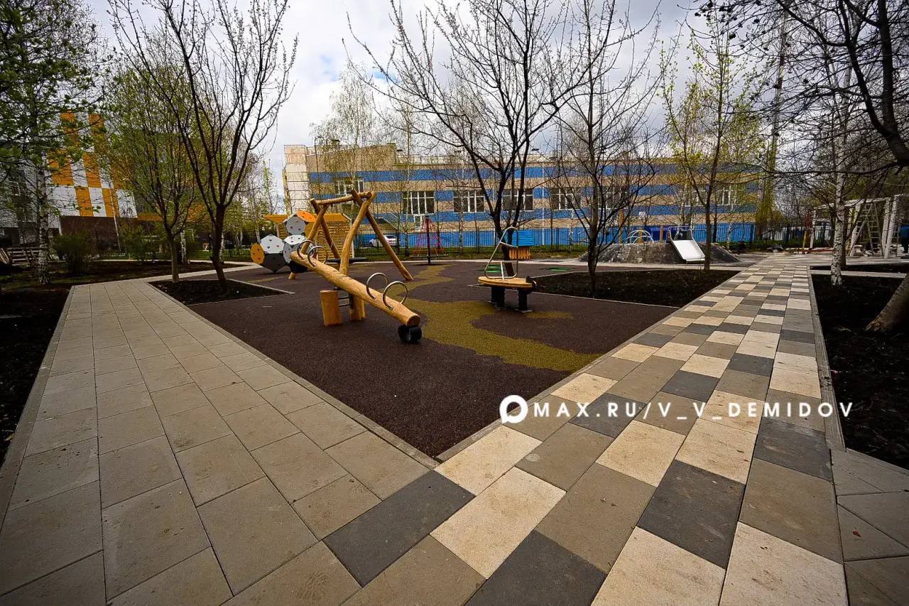 Сейчас рабочие занимаются дворовой территорией. Здесь появятся: игровые и спортивные зоны для детей, пешеходные дорожки, бордюры и металлические ограждения и зоны отдыха с беседками. Кроме того, установят уличное освещение и проведут озеленение почти 4 300 м территории.