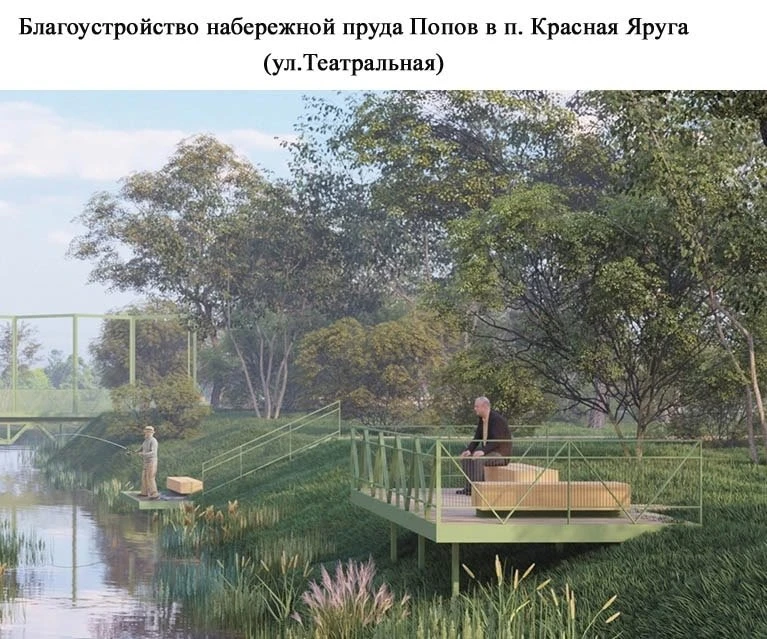 На рейтинговое голосование вынесены четыре дизайн-проекта набережной пруда Попов в посёлке Красная Яруга, претендующих на реализацию в 2027 году. Два из них посвящены благоустройству набережной со стороны улицы Костюковка, остальные проекты — территории набережной по улице Театральная. Проекты включают комплексное улучшение зон отдыха: установку современного освещения и теневых навесов, строительство пешеходных дорожек, беседки на воде и пирса. Также планируется создание зоны отдыха с шезлонгами, детской игровой площадки и парковки. Важной частью работ станет озеленение — высадка новых деревьев, кустарников и цветочных композиций.