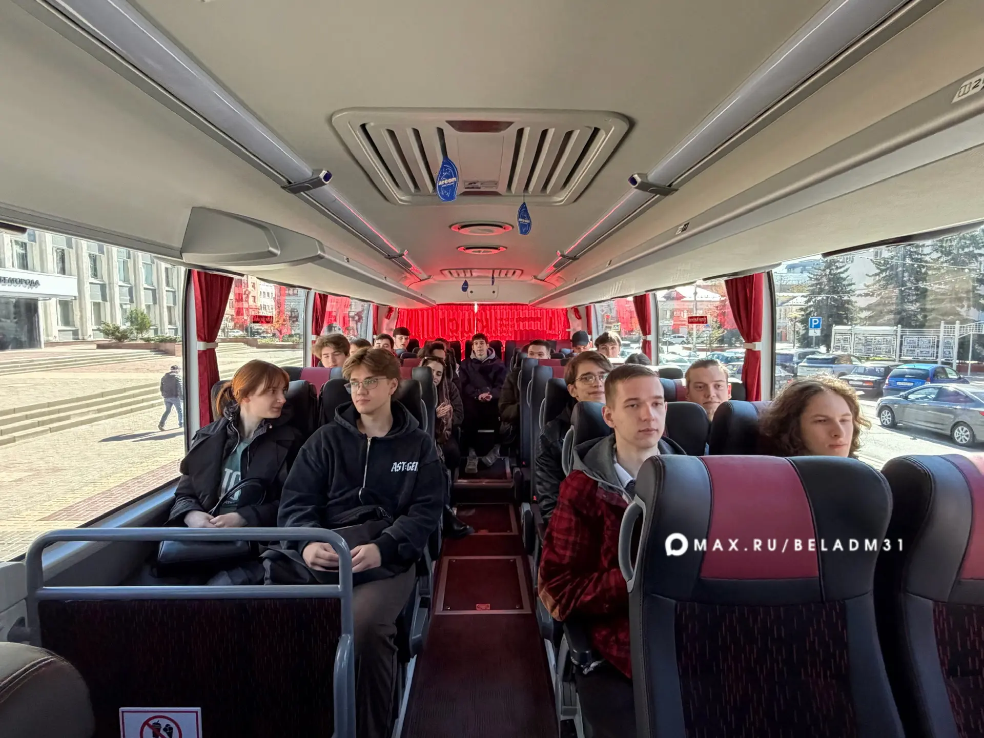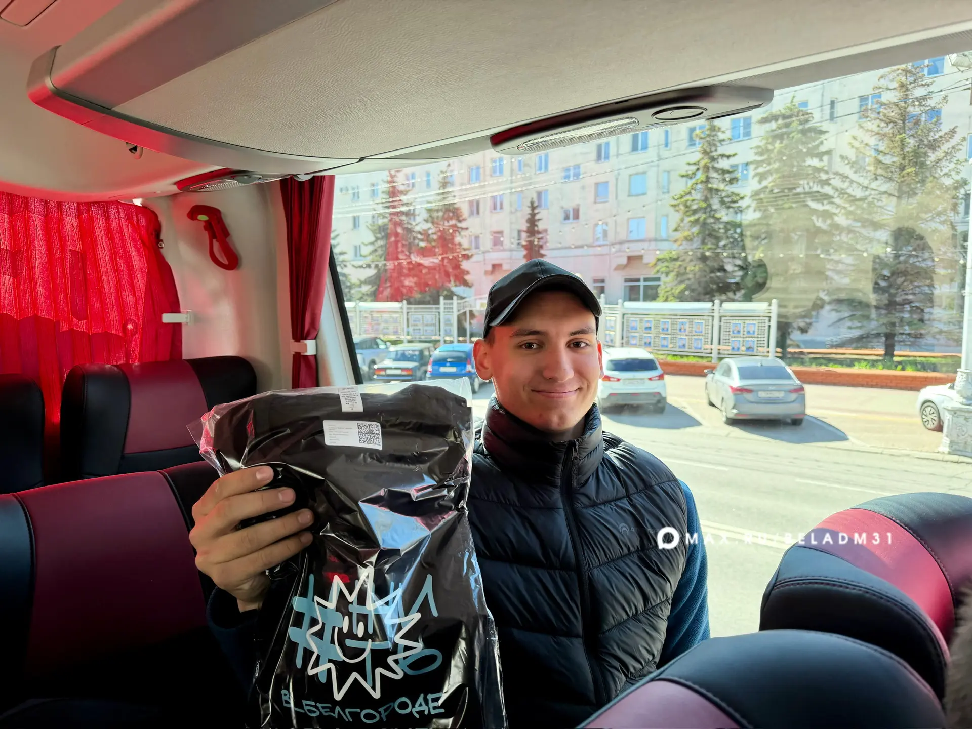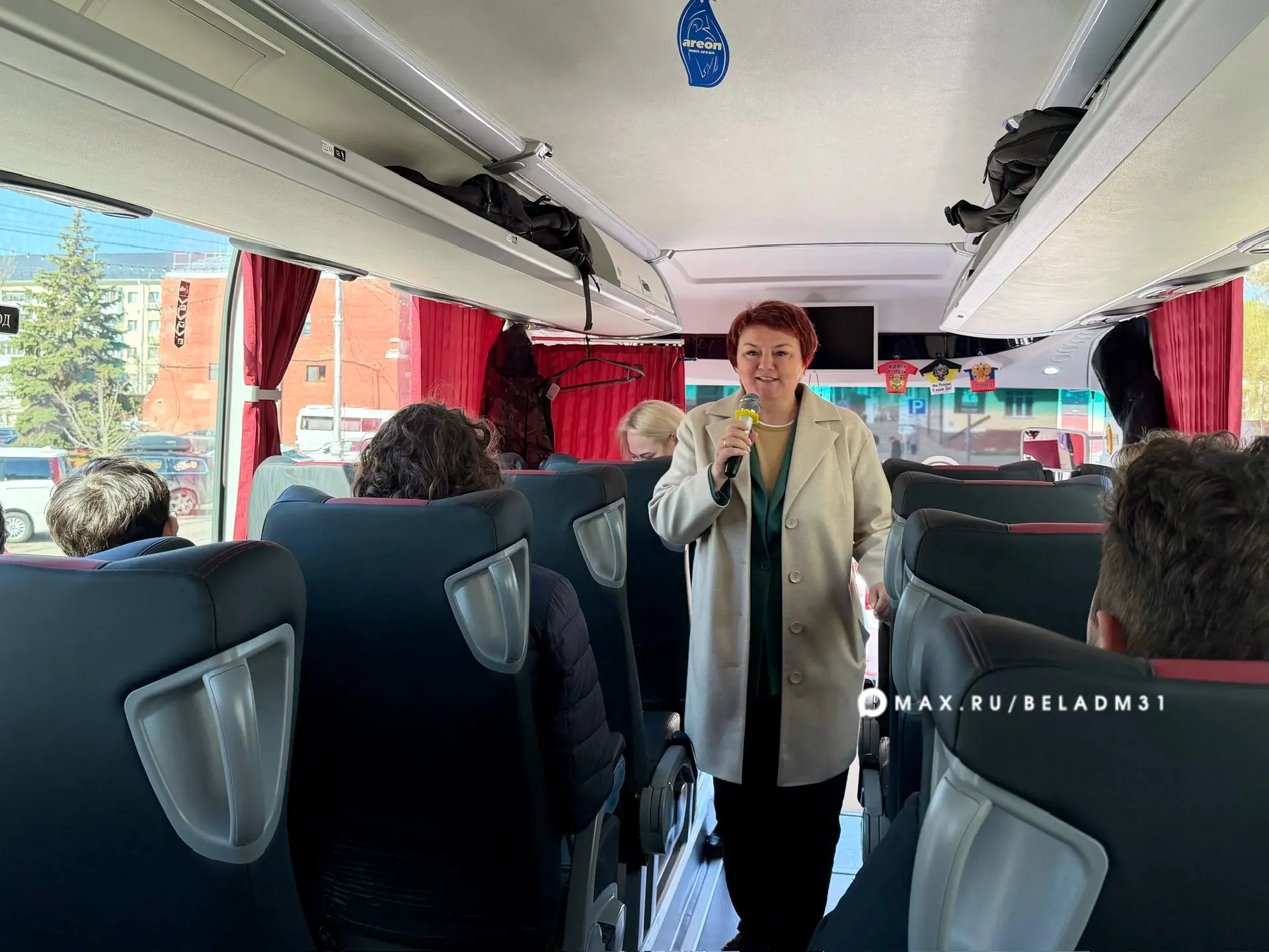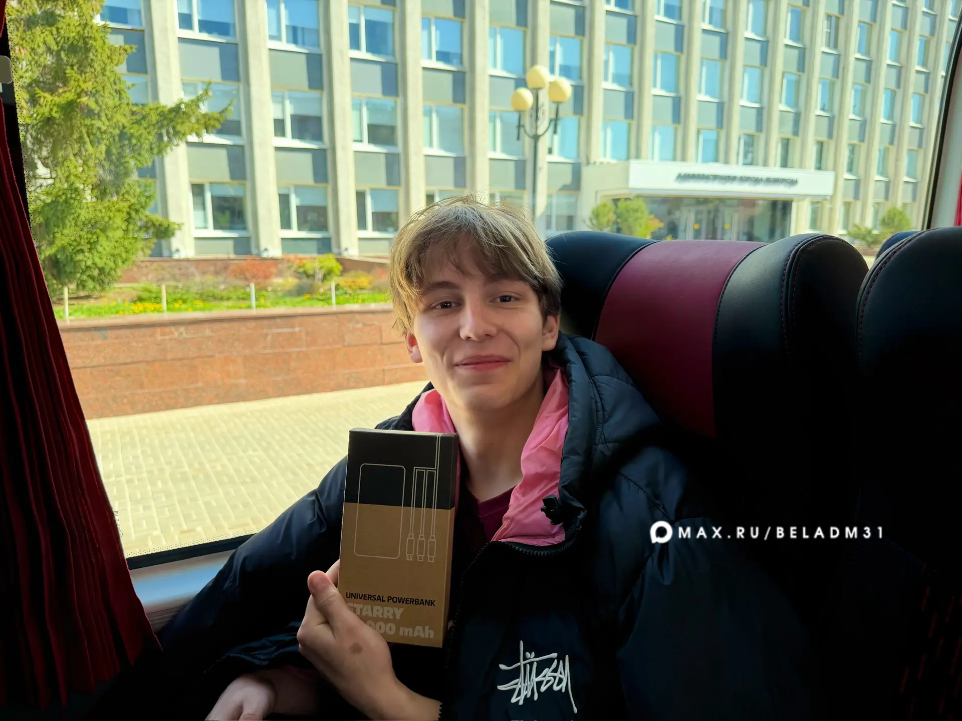 Чтобы поездка запомнилась, всем участникам раздали значки «Жить в Белгороде». За правильные ответы в небольшой викторине ребята получили футболки и пауэр-банк.
