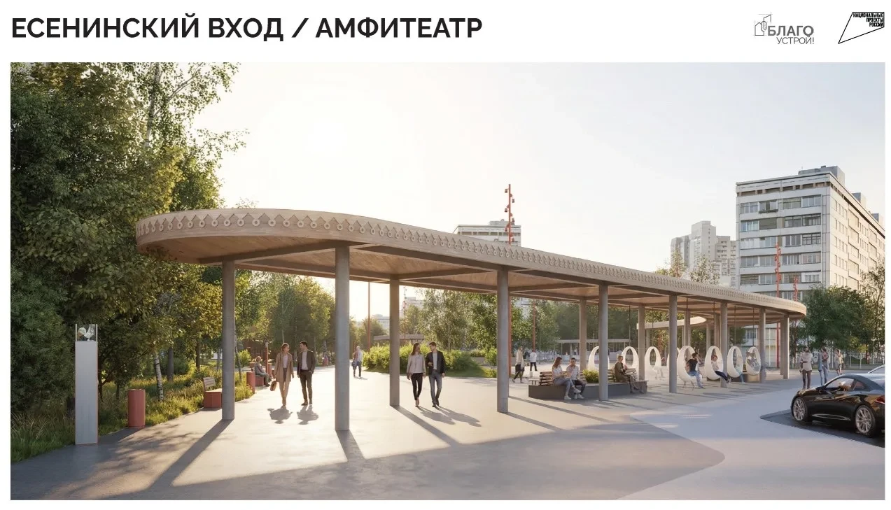 Проекты №1 и №2 предлагают классическое благоустройство: пешеходные и велосипедные дорожки, малые архитектурные формы, освещение, озеленение территории (фото 1, 2).