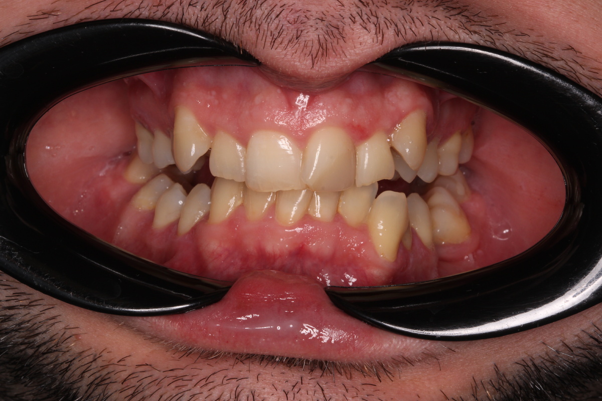 Он делал все правильно, использовал качественные щетки и пасты, но безрезультатно. При осмотре обнаружилась типичная картина — налет и зубной камень в труднодоступных местах, а также ненормальная позиция зубов, которые налезают друг на друга.