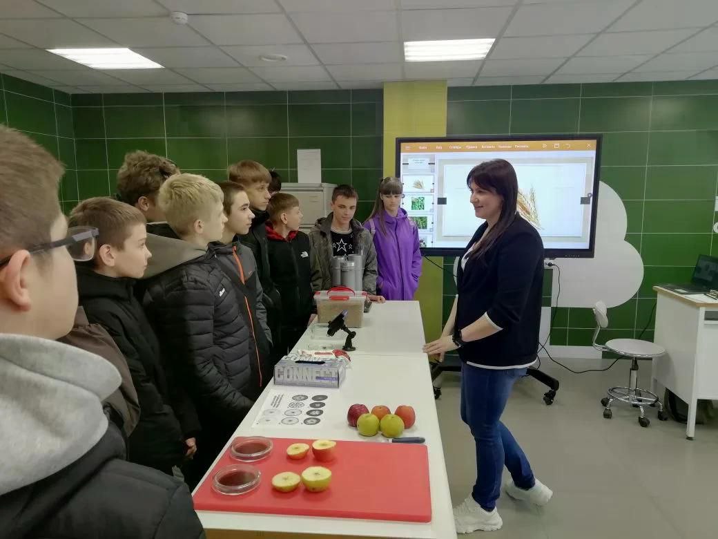 Следующим пунктом экскурсии стало посещение Дмитриевского аграрного колледжа. Здесь школьникам наглядно продемонстрировали, какие востребованные профессии открываются перед выпускниками в агропромышленном комплексе. Экскурсия по современным лабораториям и практические примеры работы с оборудованием проиллюстрировали важность сельского хозяйства для экономики региона и предоставили информацию о реальных карьерных траекториях, начиная от агрономии и заканчивая техническим обслуживанием.