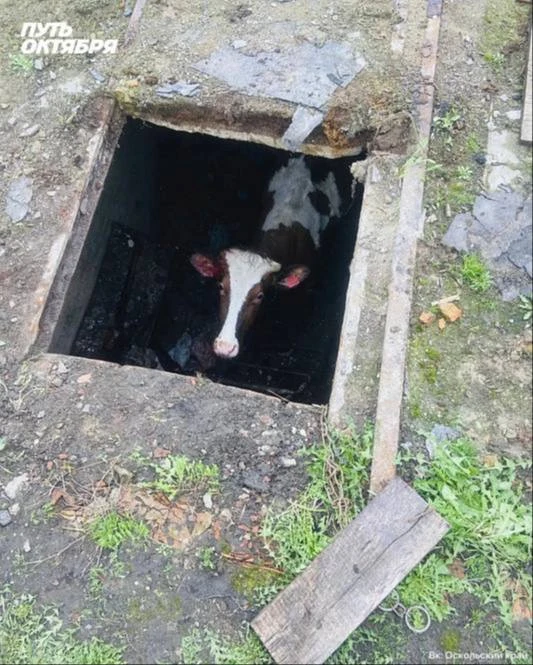 В селе Луганка Староосколького округа корова по кличке Марта провалилась в подвал.