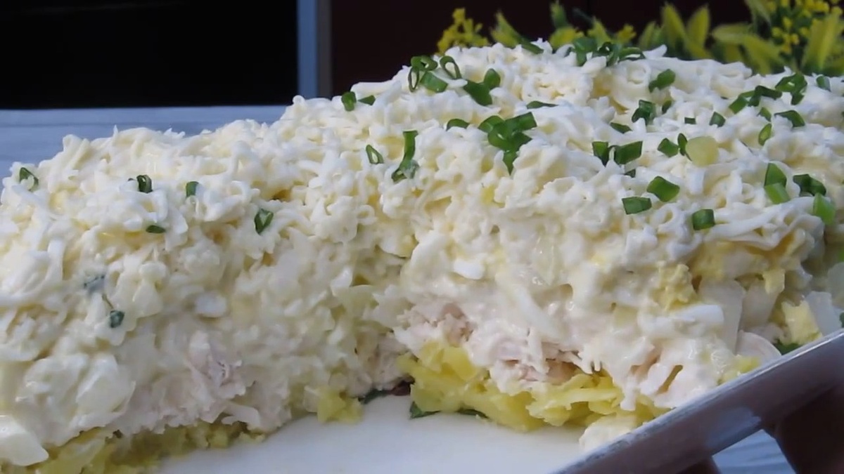 Этот салат можно приготовить с различными видами курицы — как с отварной, так и с копченой, что придаст ему уникальную нотку. В дополнение используются доступные и привычные всем ингредиенты — просто откройте холодильник и начните творить! К примеру, картофель необычным образом превращается в ароматное и вкусное подложку, если добавить немного специй.
