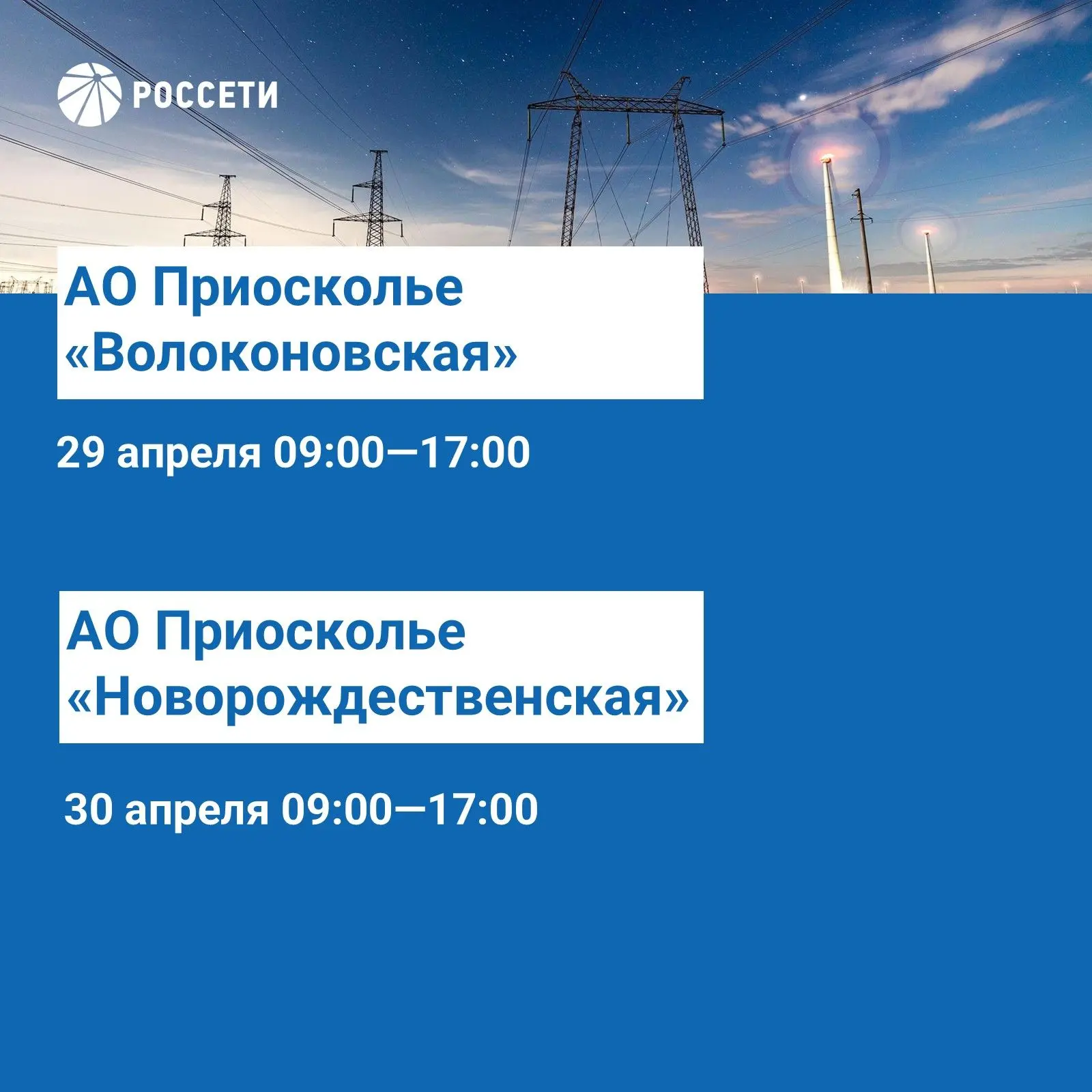 Волоконовский РЭС информирует о плане отключения электроэнергии с 27 апреля по 3 мая 2026 года