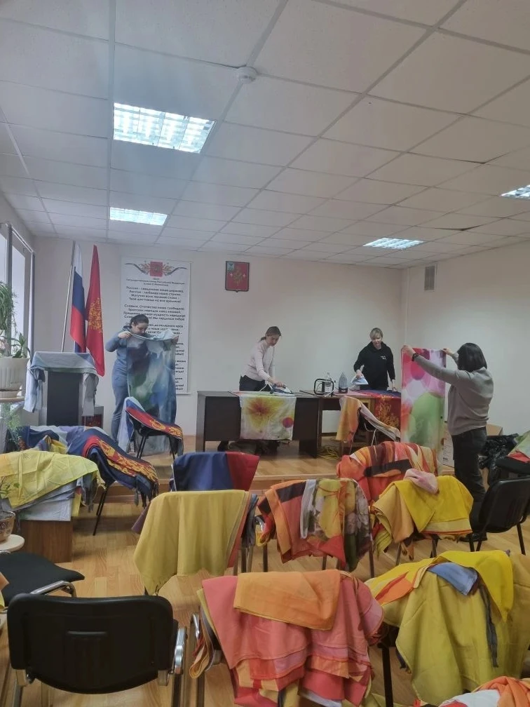 Каждый флаг требует полного цикла восстановления: бережной стирки и тщательной глажки. Если раньше эту почётную миссию брали на себя социальные учреждения, обладающие необходимыми ресурсами, то в этом году эстафету перенял женский коллектив территориального управления поселка Борисовка. Именно на хрупкие плечи сотрудниц легла забота о том, чтобы на этой неделе все 140 символов заняли свои законные места.