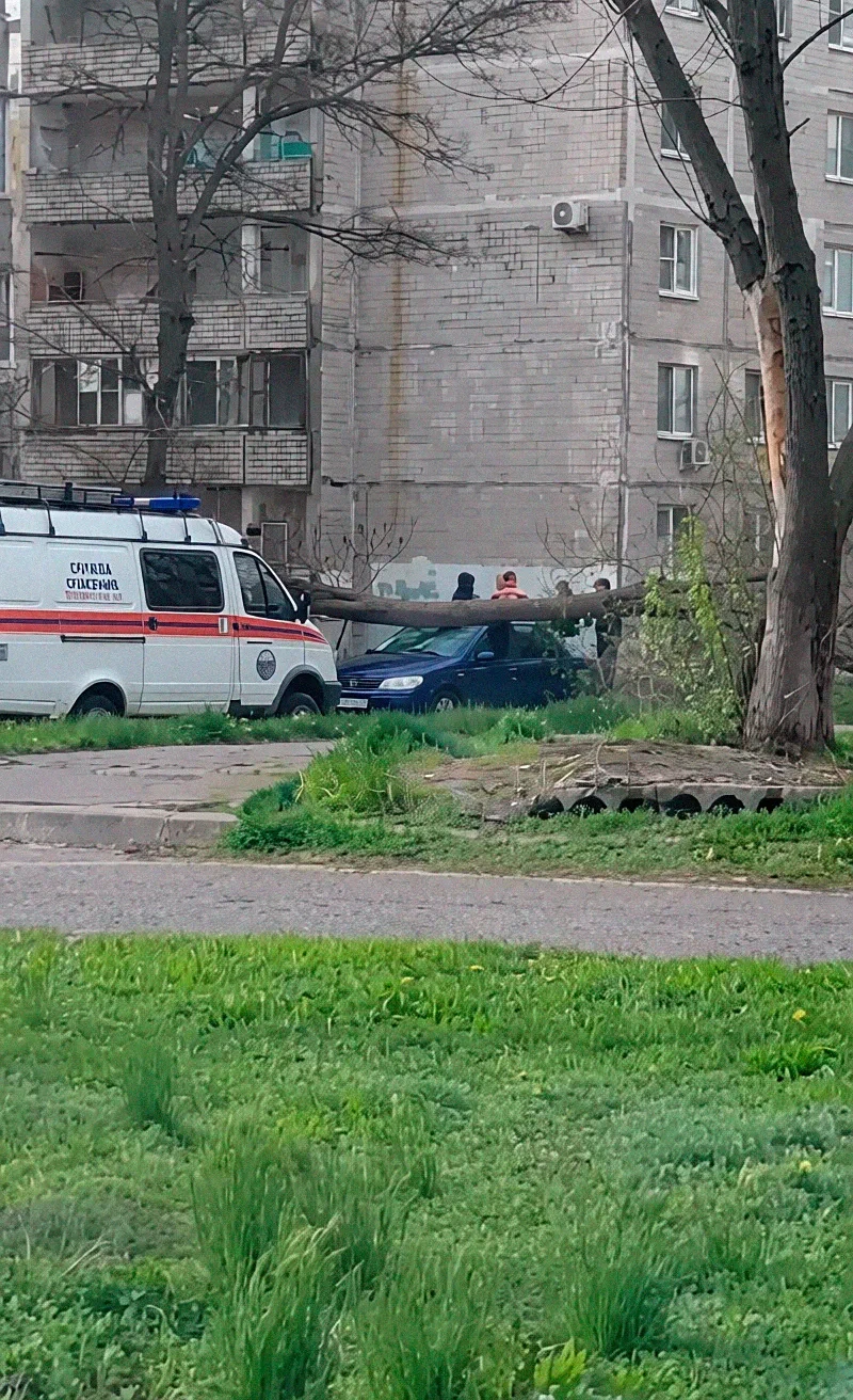 В нескольких микрорайонах города упавшие деревья повредили автомобили. Аварийные службы выехали на места, деревья распилены и убраны с проезжей части.