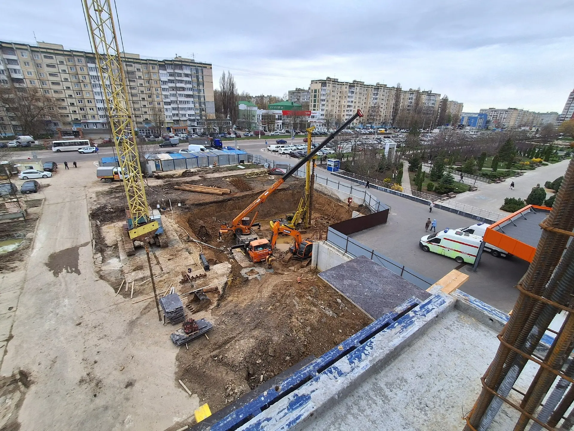 В настоящее время на стадии завершения работы по переносу теплотрассы с пятна застройки, ведется вынос сетей ливневой канализации и второй этап выноса сетей водоснабжения и водоотведения с пятна застройки. Параллельно рабочие продолжают устройство наружных сетей электроснабжения и водоснабжения.