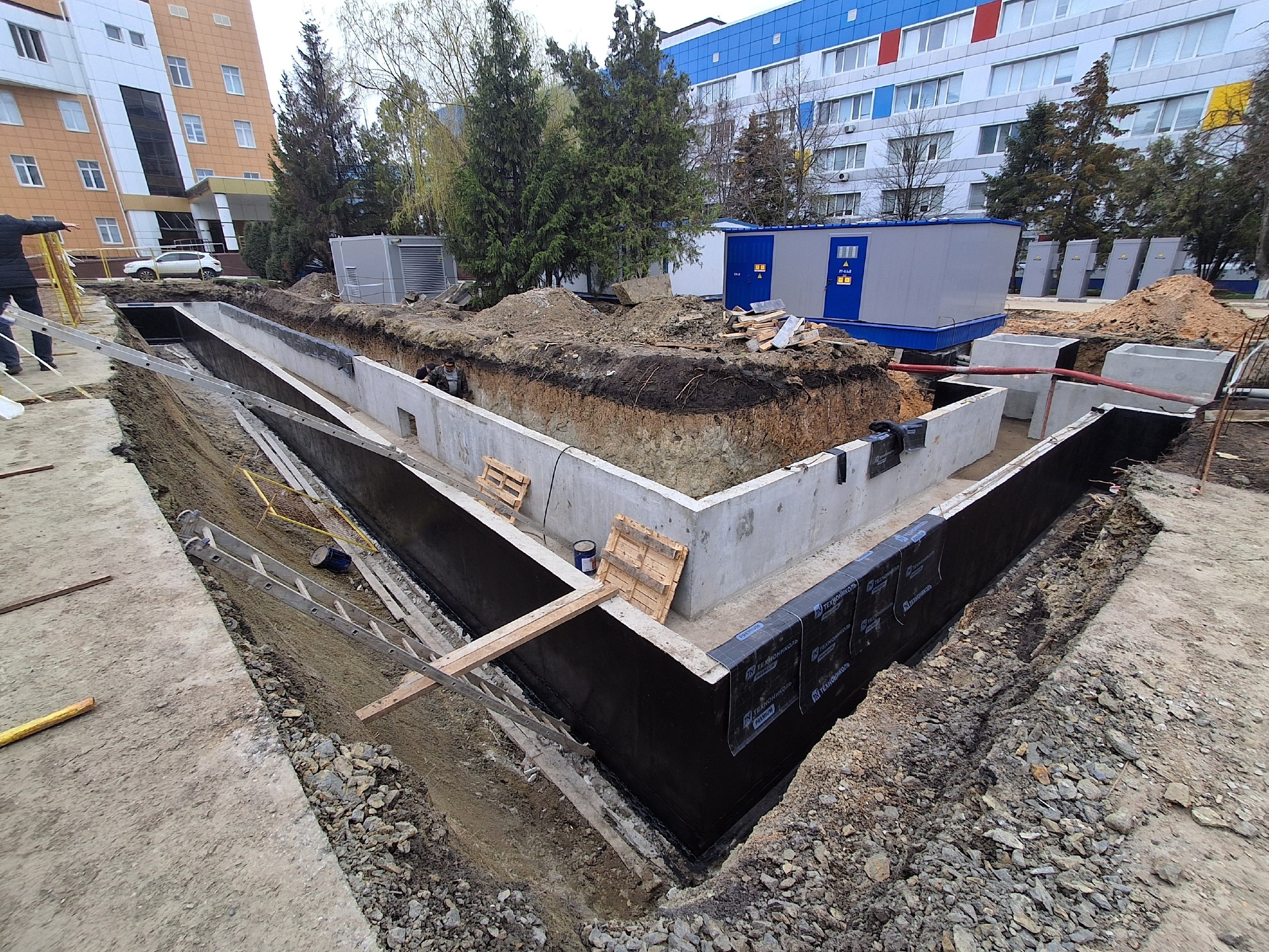 В настоящее время на стадии завершения работы по переносу теплотрассы с пятна застройки, ведется вынос сетей ливневой канализации и второй этап выноса сетей водоснабжения и водоотведения с пятна застройки. Параллельно рабочие продолжают устройство наружных сетей электроснабжения и водоснабжения.