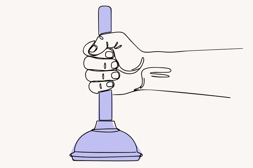 - Вантуз: Этот эффективный инструмент состоит из резинообразного элемента и длинной ручки. Чтобы использовать вантуз, сначала нужно наполнить раковину водой так, чтобы резиновая часть инструмента полностью погрузилась в жидкость. Затем, резко прижимая и отрывая вантуз, создается перепад давления, который поможет разбить засор.