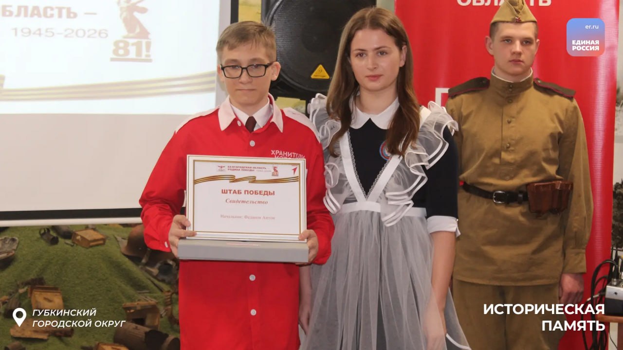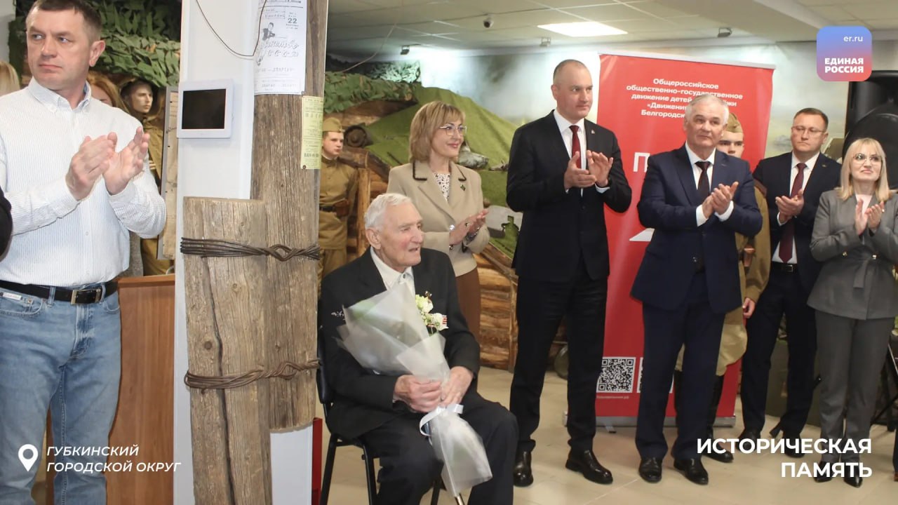 В рамках партпроекта «Историческая память» в Губкинском округе состоялось открытие Штаба Победы на базе Патриотического клуба «За Родину!». На мероприятии присутствовал ветеран Великой Отечественной войны, почетный гость Владимир Семенович Волога, а также участники Специальной военной операции, руководители общественных организаций, молодежь, депутаты Единой России, члены и сторонники Партии.