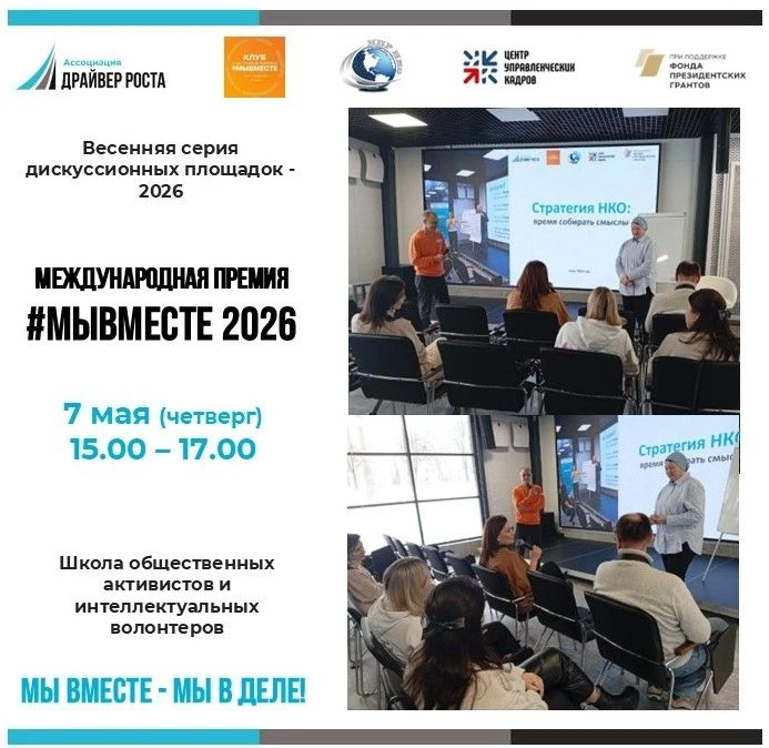 7 мая с 15:00 до 17:00 пройдёт очная встреча, посвящённая Международной Премии #МЫВМЕСТЕ. Встреча будет полезна представителям НКО, ТОС, волонтёрских инициатив, а также специалистам муниципальных администраций, курирующим некоммерческий сектор, студентам и молодым специалистам, у которых есть идеи, но нет опыта участия в грантовых конкурсах.
