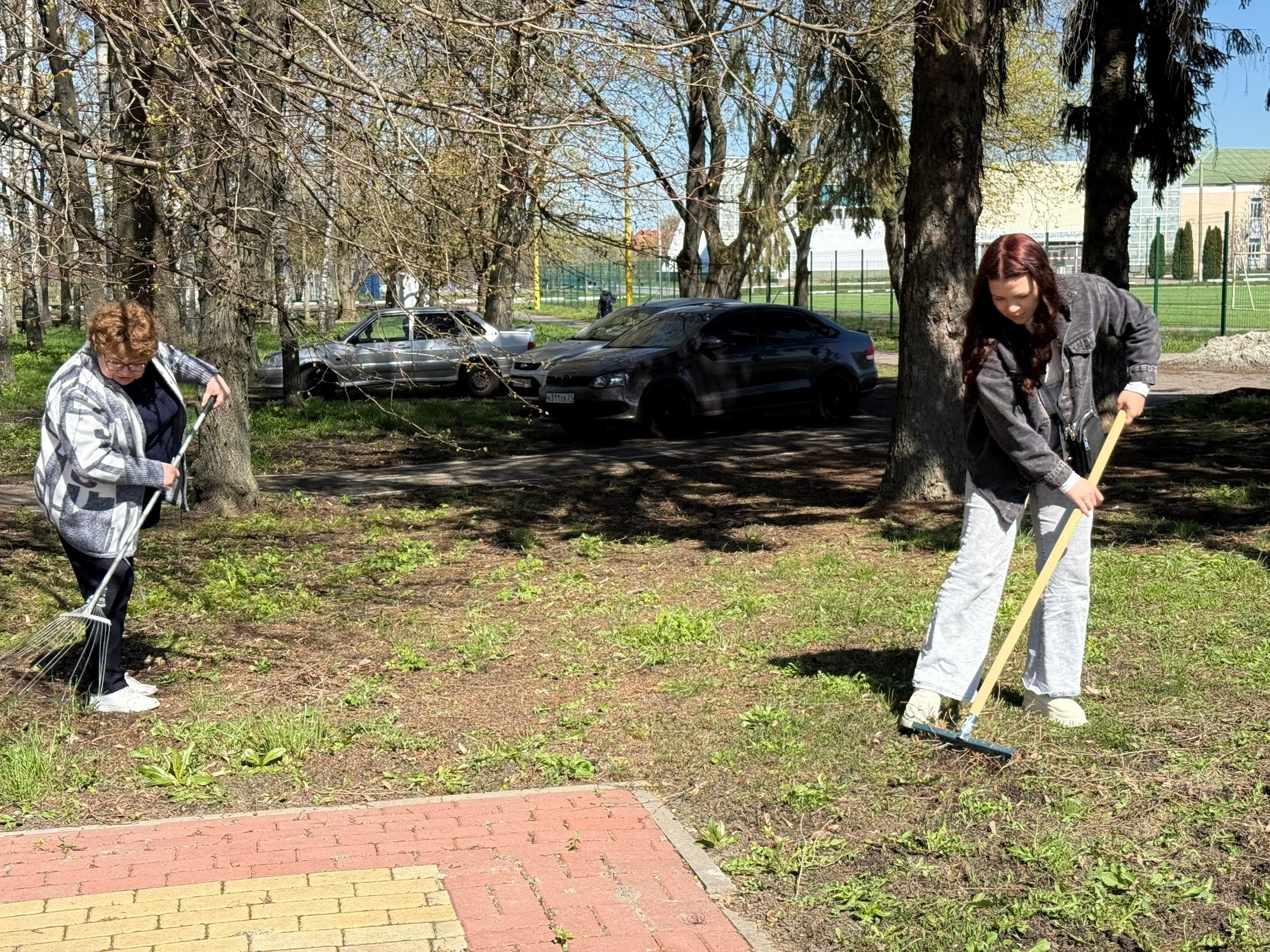 Вооружившись необходимым инвентарём, активисты собрали мусор, убрали опавшие листья и сухую траву, привели в порядок клумбы. За несколько часов территория преобразилась, став чистой и ухоженной.
