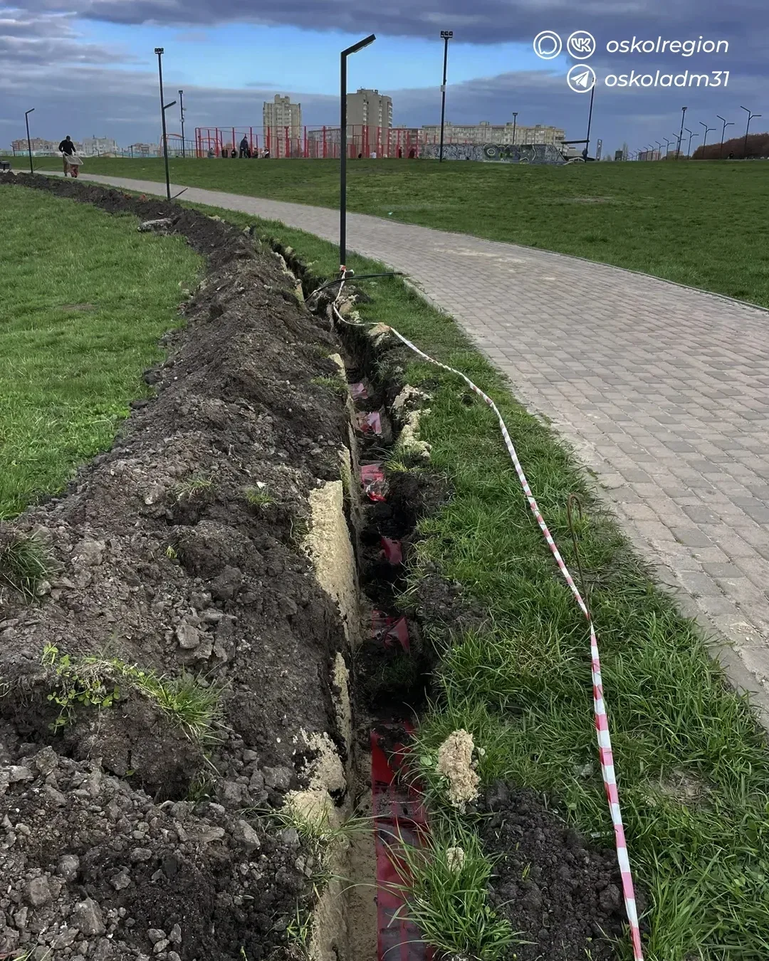 В одном из самых популярных мест отдыха горожан продолжаются работы по замене наружного освещения. Подрядчик зашел на объект в середине апреля и сейчас ведет подготовку основания: рабочие проводят бурение под фундаменты опор, прокладывают траншеи и готовят кабельные линии.