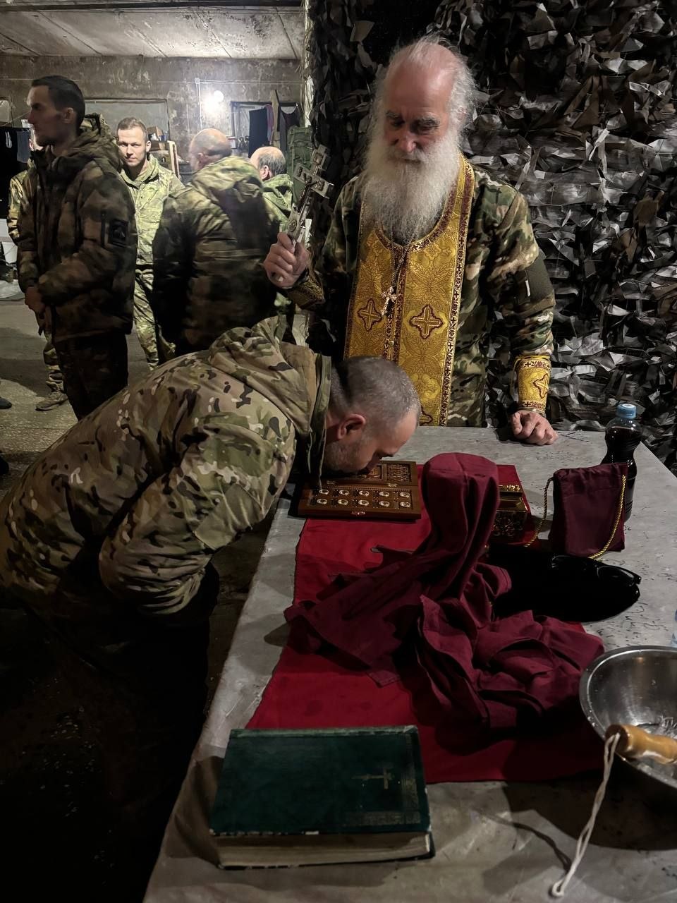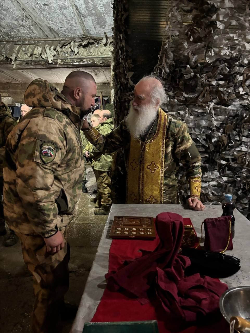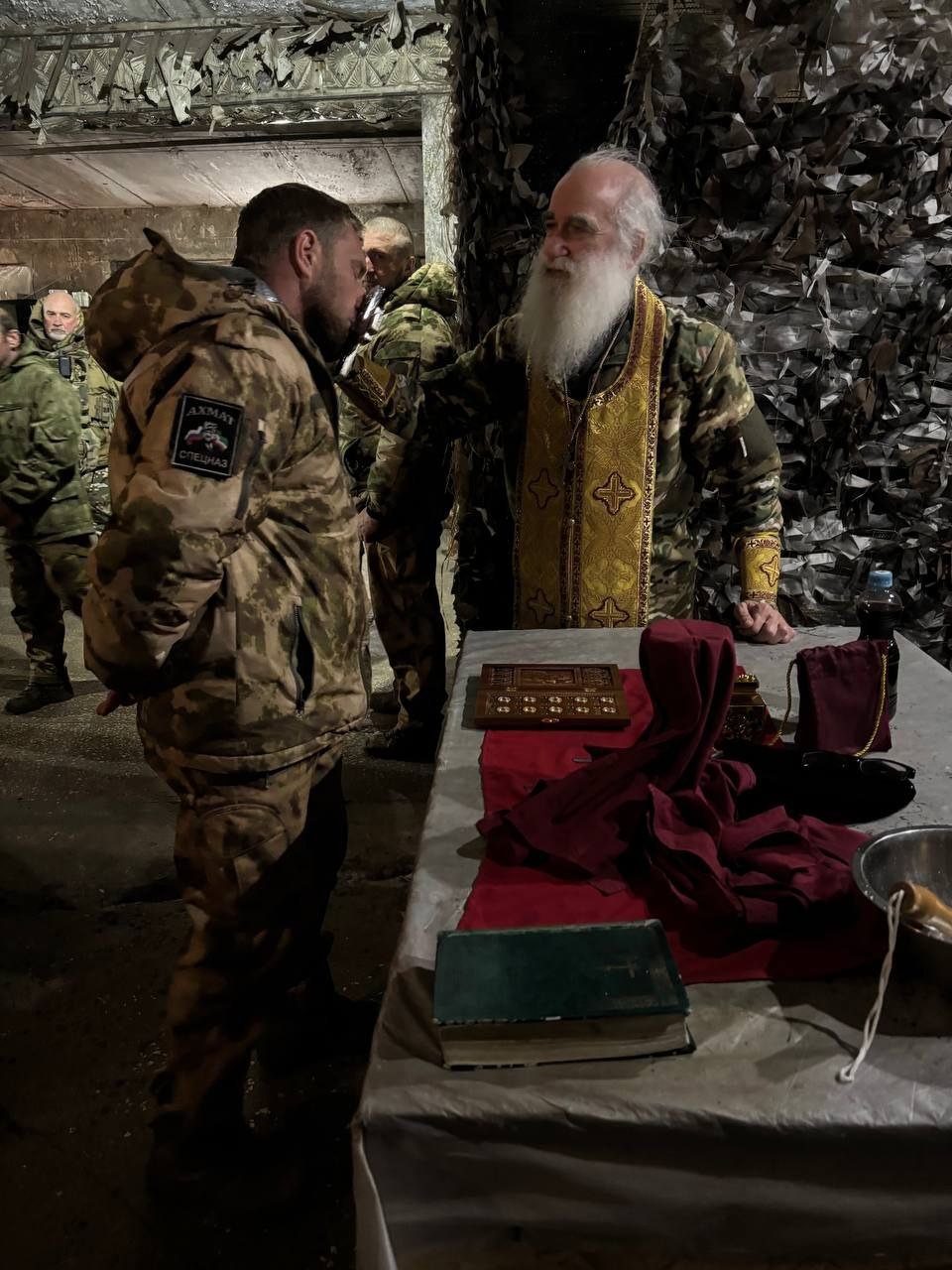 Дорогой старший Брат, настоятель Свято-Никольского храма посёлка Ракитное Белгородской области, протоиерей Николай Германский провёл таинство причастия и молебен для православных бойцов отряда "Корнета" спецназа "АХМАТ" МО РФ.