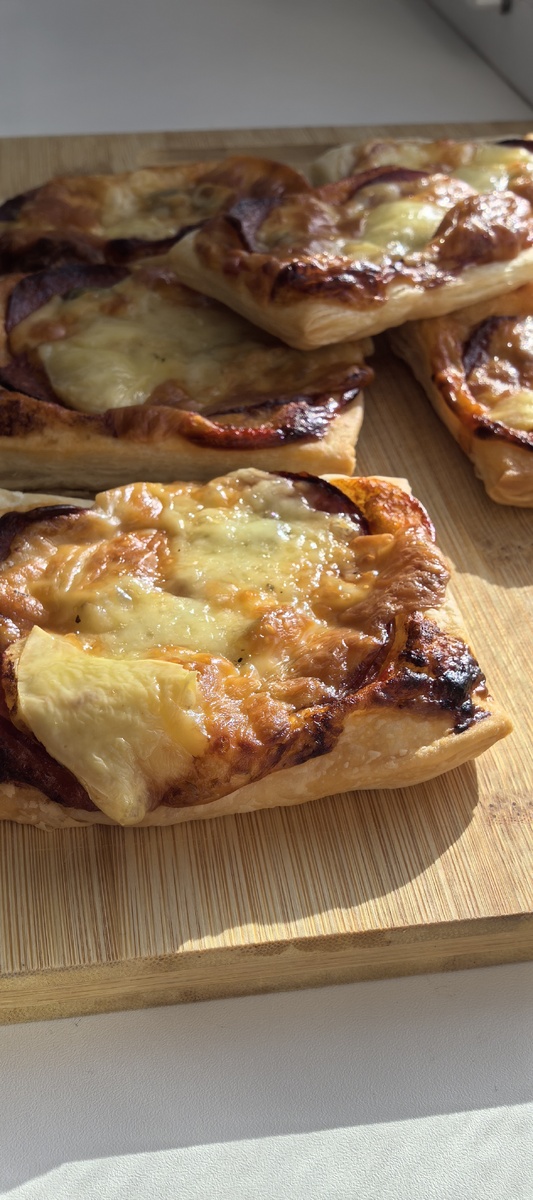 На кухне начинается настоящая магия. Никаких затрат времени на вымешивание теста — просто нарезка порционных квадратов слоёного теста. Каждый кусочек аккуратно раскатывается и накалывается вилкой, чтобы тесто не поднималось в процессе выпекания. Чтобы основа пиццы получилась идеальной, важно сохранить равномерное распределение начинки.