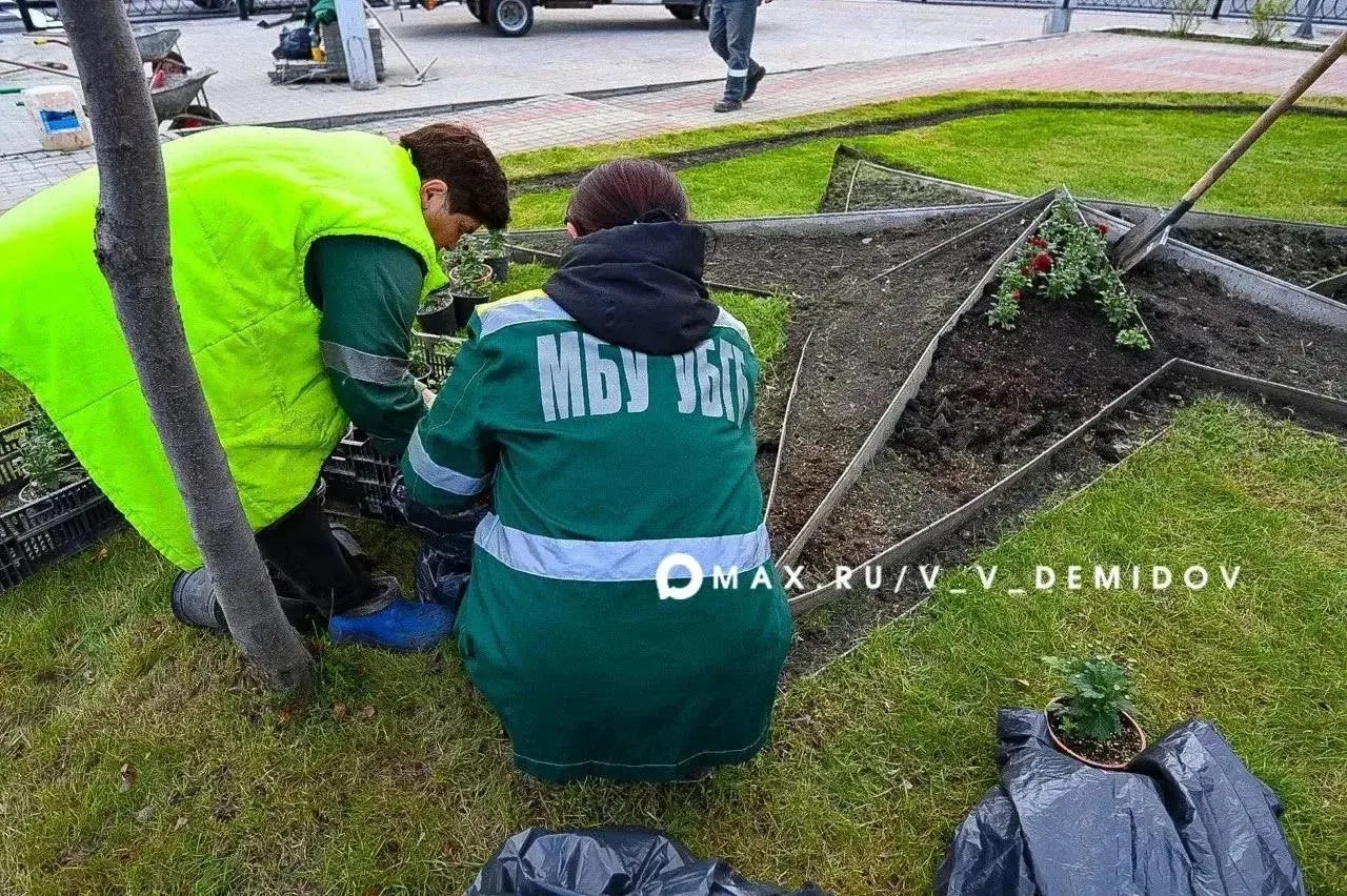 Сейчас на площадке работают озеленители: они высадят 1000 хризантем и 4000 виолы.