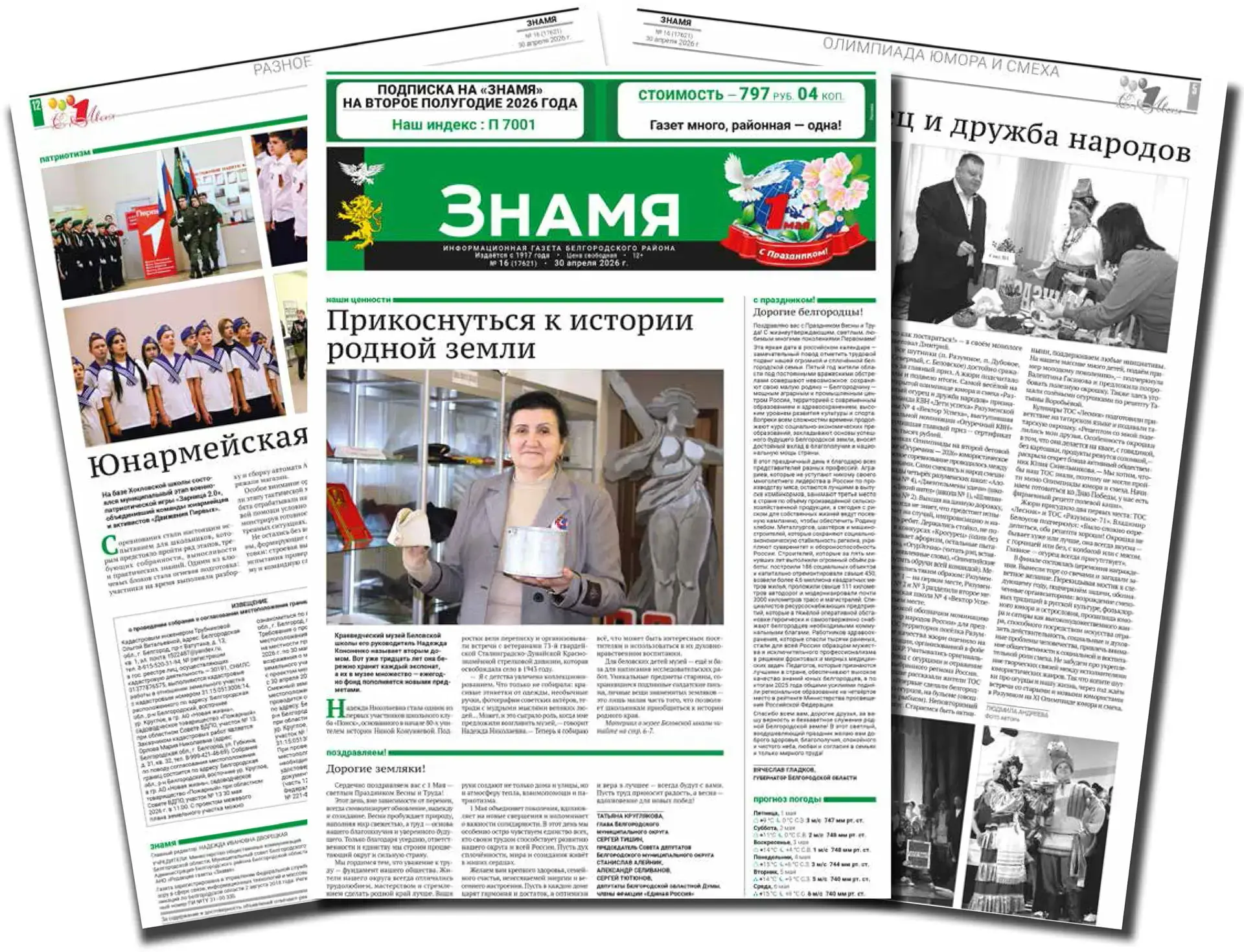 Белгородский муниципальный округ информирует читателей, что в номере газеты «Знамя» от 30 апреля 2026 года публикуются важные новости округа, а также официальные объявления и проекты