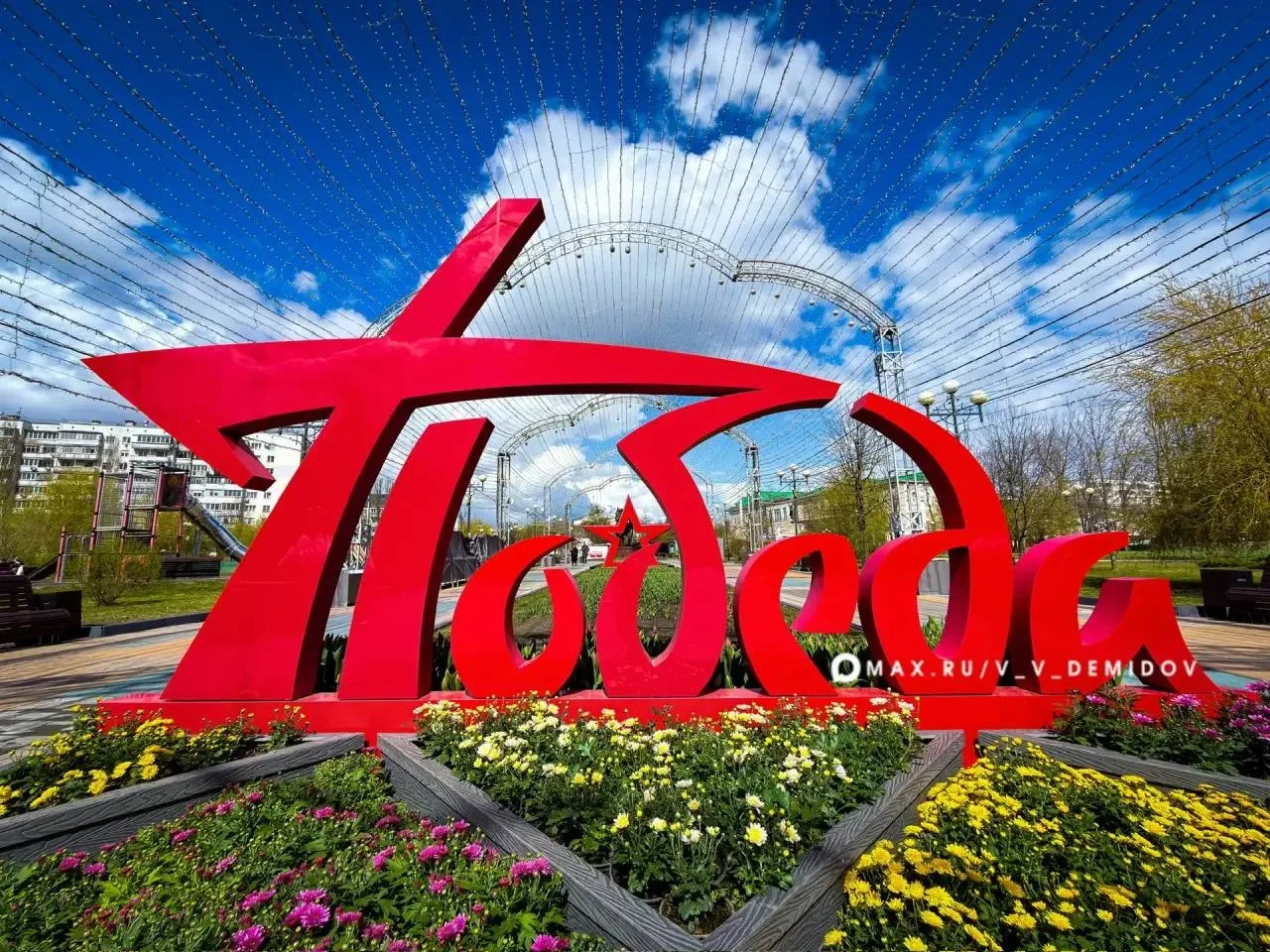На центральной аллее парка Победы наши озеленители создают оригинальную композицию-фотозону «Победа».