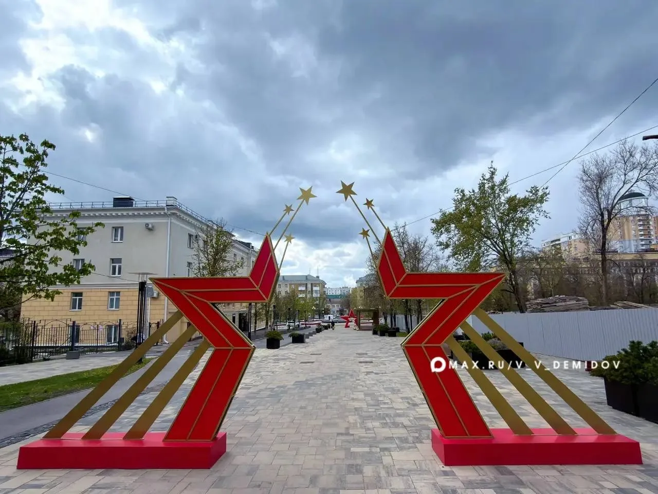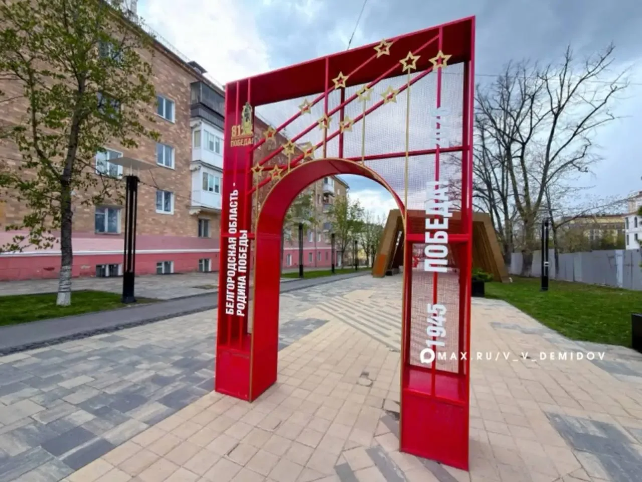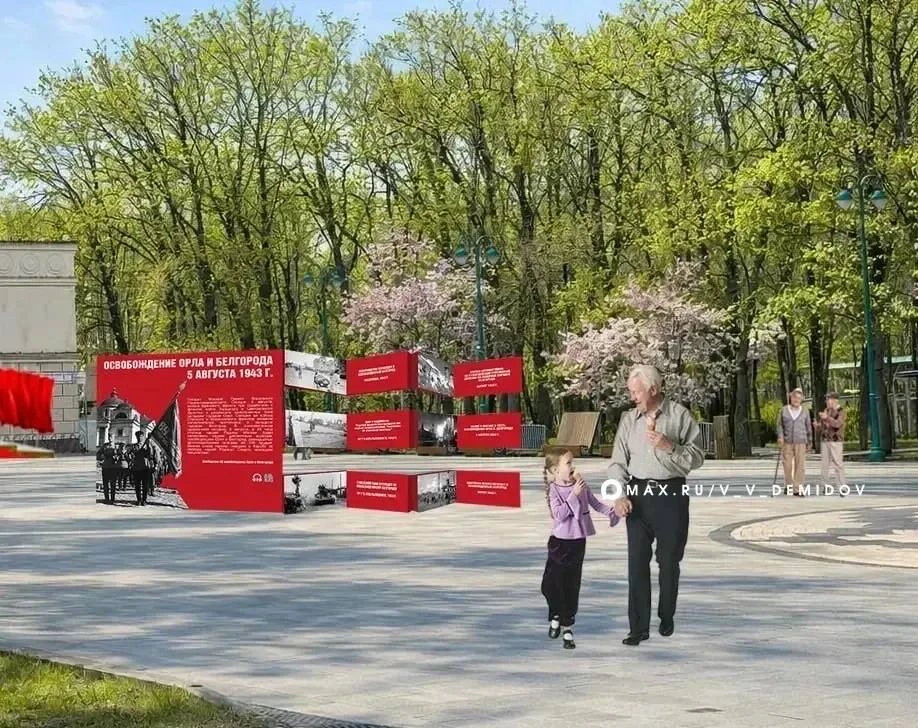 — у КЦ «Октябрь» — двухсторонняя инсталляция о Победе и освобождении Белгорода.