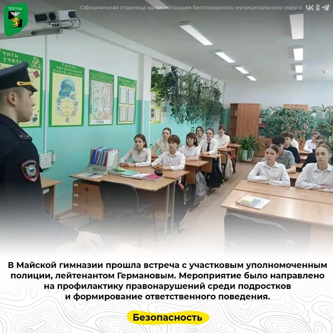 В Майской гимназии прошла встреча с участковым уполномоченным полиции, лейтенантом Германовым