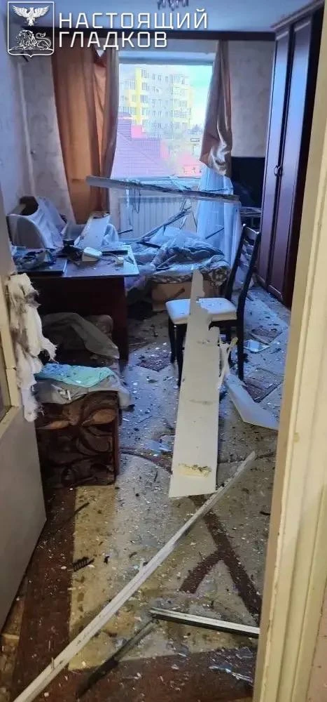 В Шебекино при атаках БПЛА повреждены кровля, остекление квартир и входная группа одного из подъездов МКД, прицеп грузовика, а также оборудование на территории предприятия.